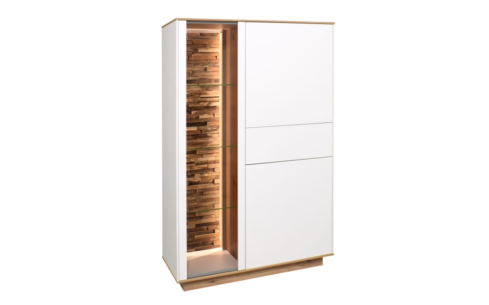 Mäusbacher Vitrinenschrank Faro, weiß/Asteiche, 180 cm, inkl. Push-to-Open Funktion Glas, Holzdekor, Holz 81 cm