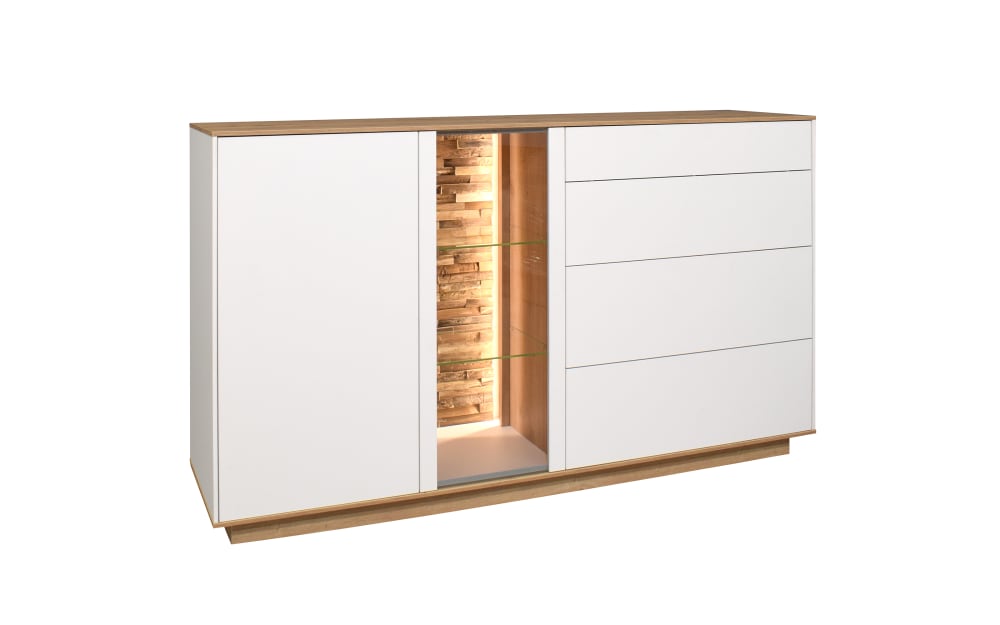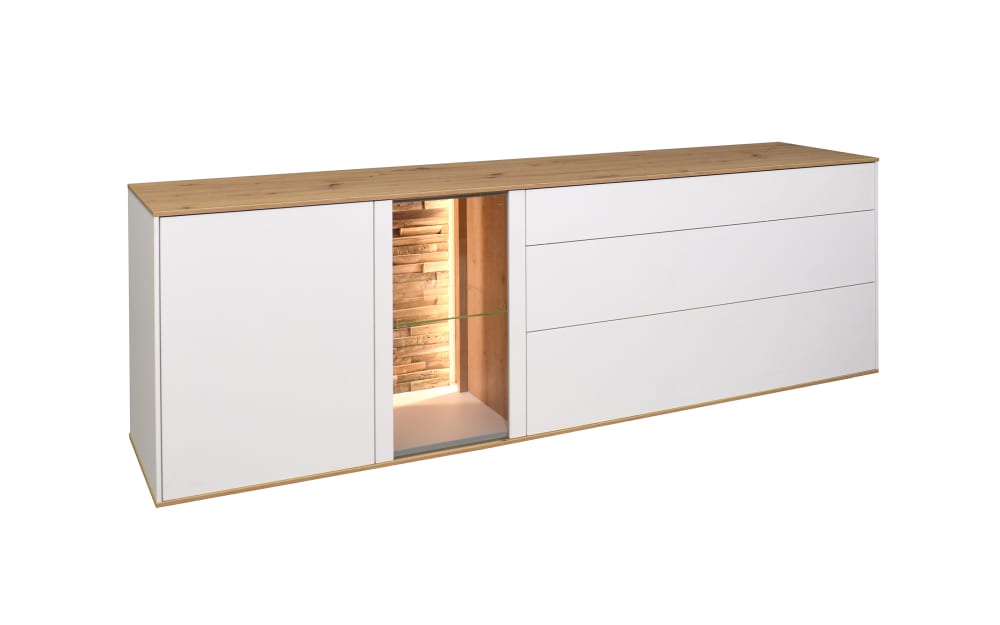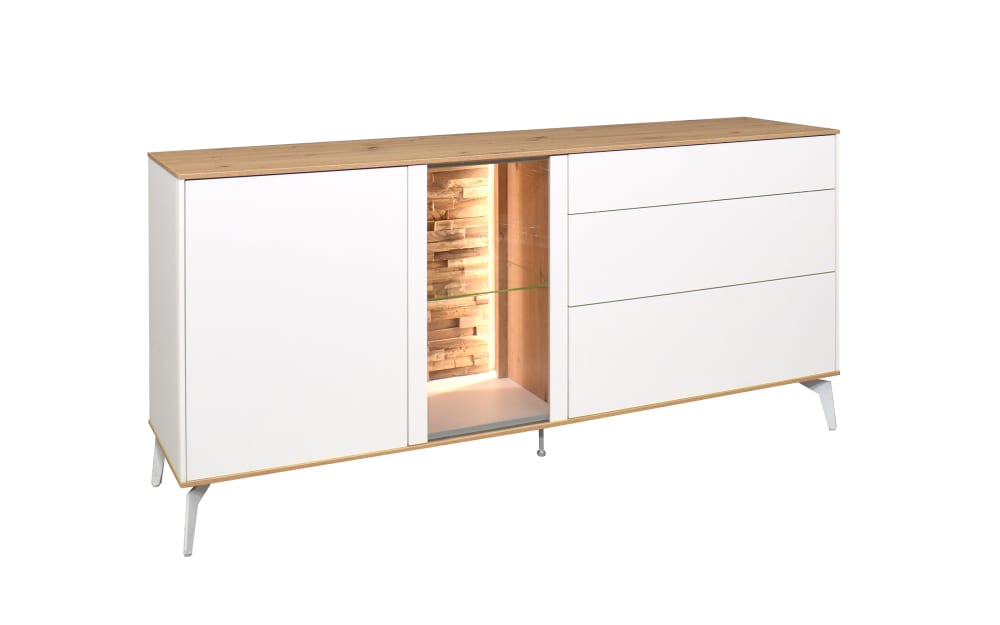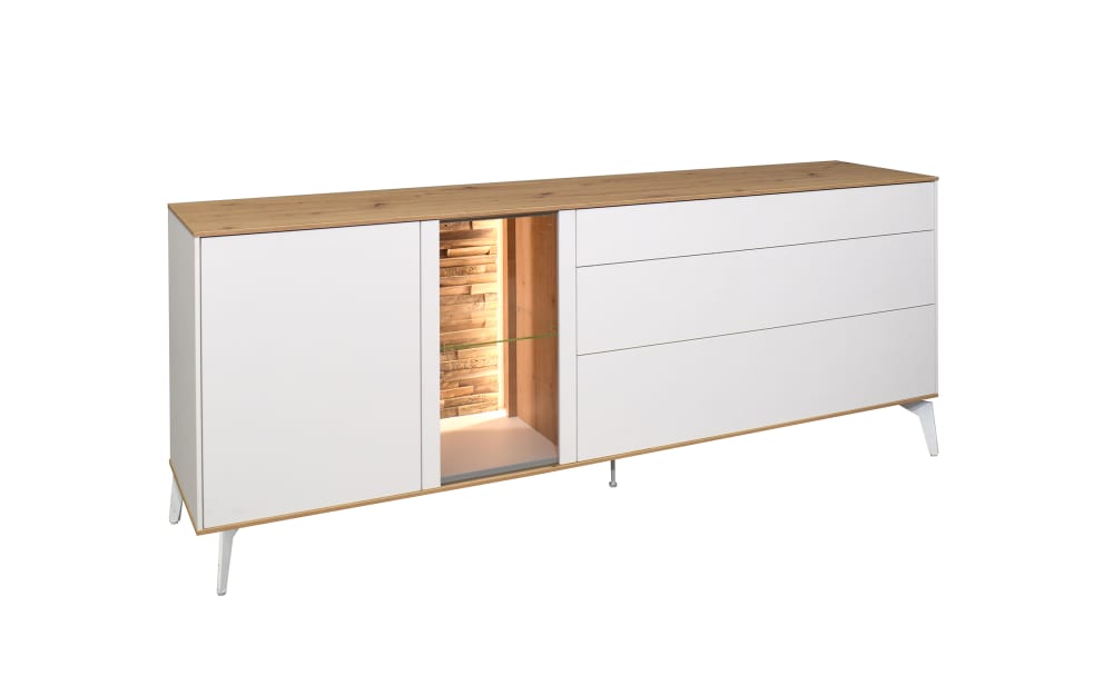 Mäusbacher Sideboard Faro, weiß/Asteiche, 98 cm, inkl. Push-to-Open Funktion Glas, Holz, Holzdekor 169 cm
