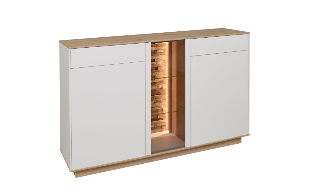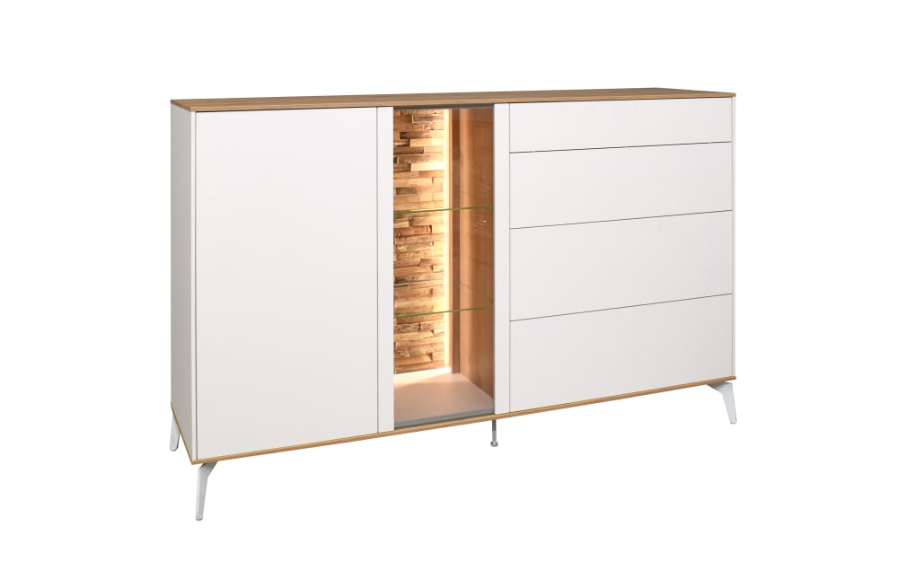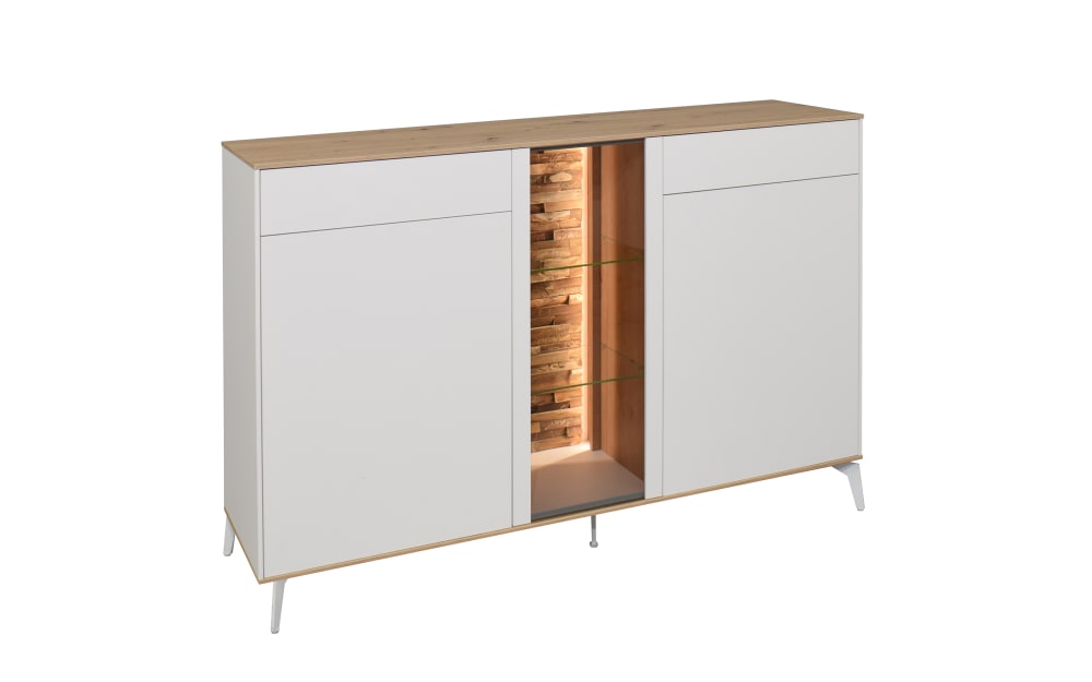 Mäusbacher Sideboard Faro, weiß/Asteiche, 98 cm, inkl. Push-to-Open Funktion Glas, Holz, Holzdekor, Metall 159 cm