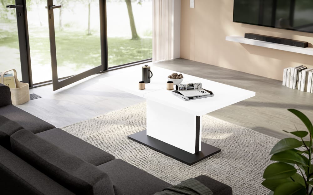 Mäusbacher Couchtisch Lift 1, weiß, inkl. Höhenverstellung Holzdekor