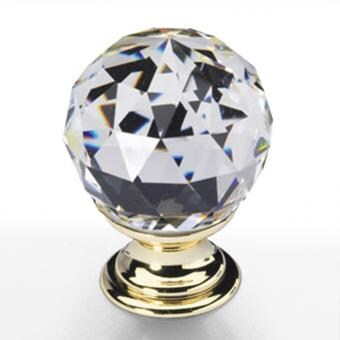 Möbelknopf Kristall Messing 30mm, kristall klar