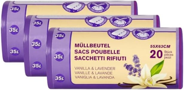 3 Rollen x 20 Beutel Allzweckbeutel Reißfeste Müllbeutel mit Zugband 35L - Vanilla & Lavender