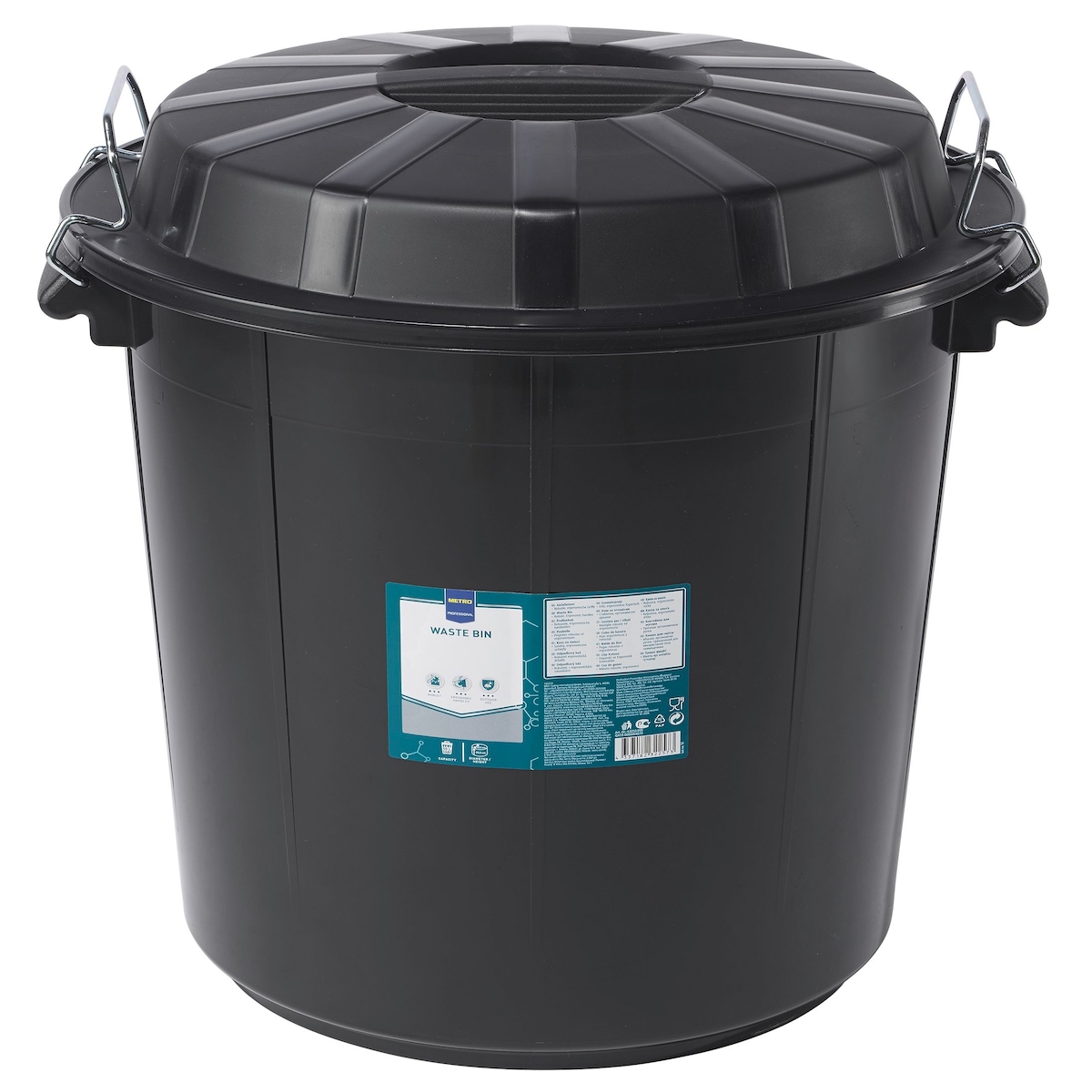 METRO Professional Mülleimer mit Deckel, Polypropylen, Ø 42.5 x 50.5 cm, 50 L, mit Schließclips, schwarz