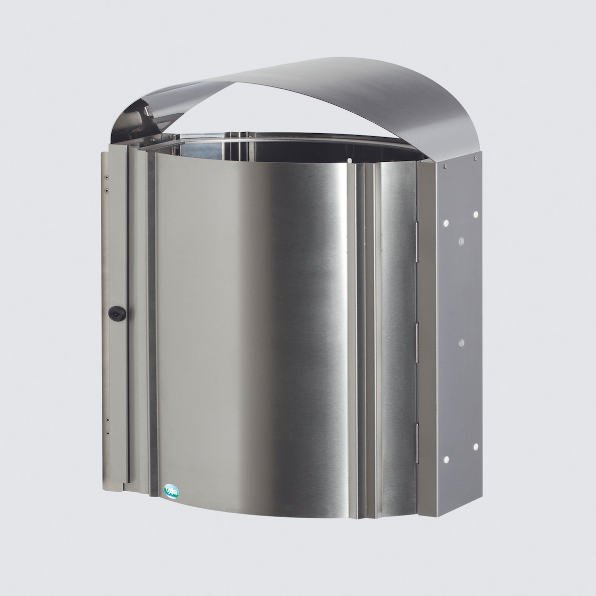 PROREGAL Robuster Wandabfallsammler mit Schutzdach für den Aussenbereich | 50 Liter, HxBxT 79x48x35cm | Edelstahl | Mülleimer Abfalleimer Müllkorb