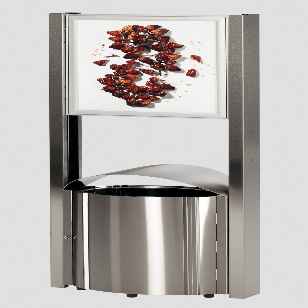 PROREGAL Robuster Standabfallsammler mit Schutzdach & Werbefläche | 50 Liter, HxBxT 180x48x35cm | Edelstahl | Mülleimer Abfalleimer