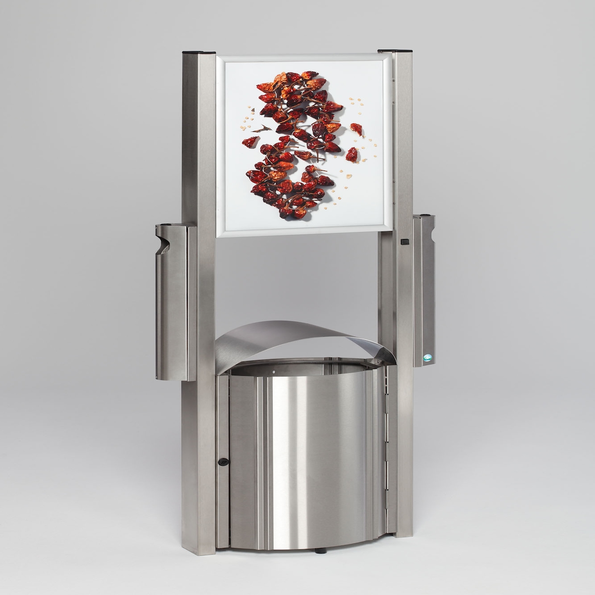 PROREGAL Robuster Kombiascher mit Schutzdach & Werbefläche | 50 Liter, HxBxT 180x71x35cm | Edelstahl | Mülleimer Aschenbecher Abfalleimer