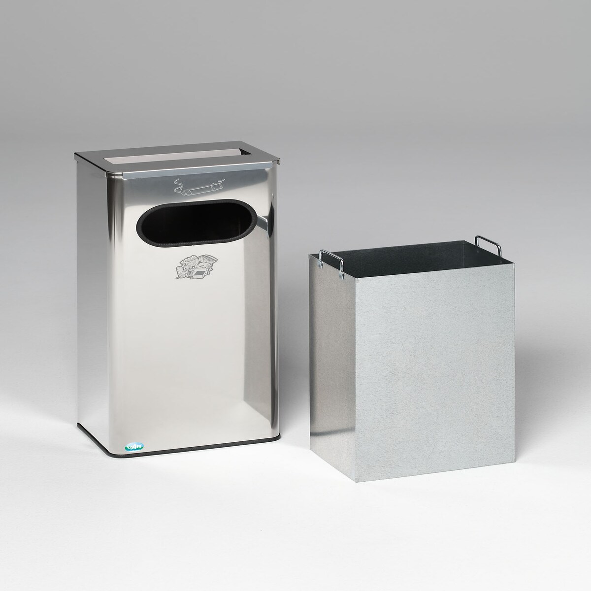 PROREGAL Robuster Kombiascher mit Edelstahl-Abdeckung | HxBxT 76x31x22cm | Verzinkter Stahl | Silber | Mülleimer Aschenbecher Abfalleimer