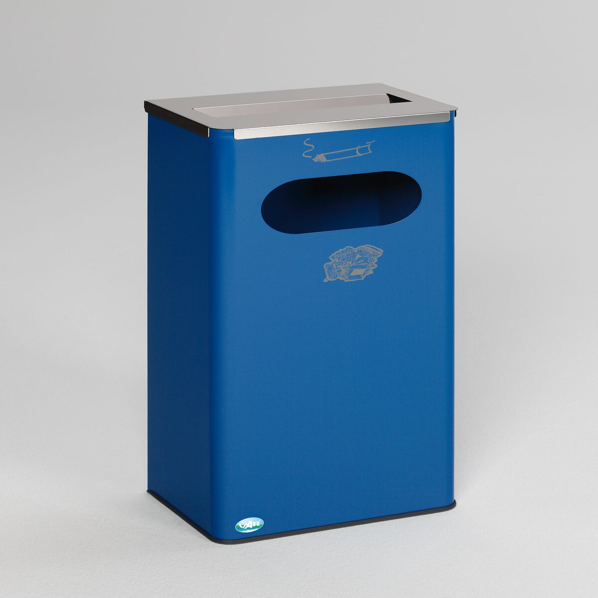 PROREGAL Robuster Kombiascher mit Edelstahl-Abdeckung | HxBxT 76x31x22cm | Verzinkter Stahl | Blau | Mülleimer Aschenbecher Abfalleimer