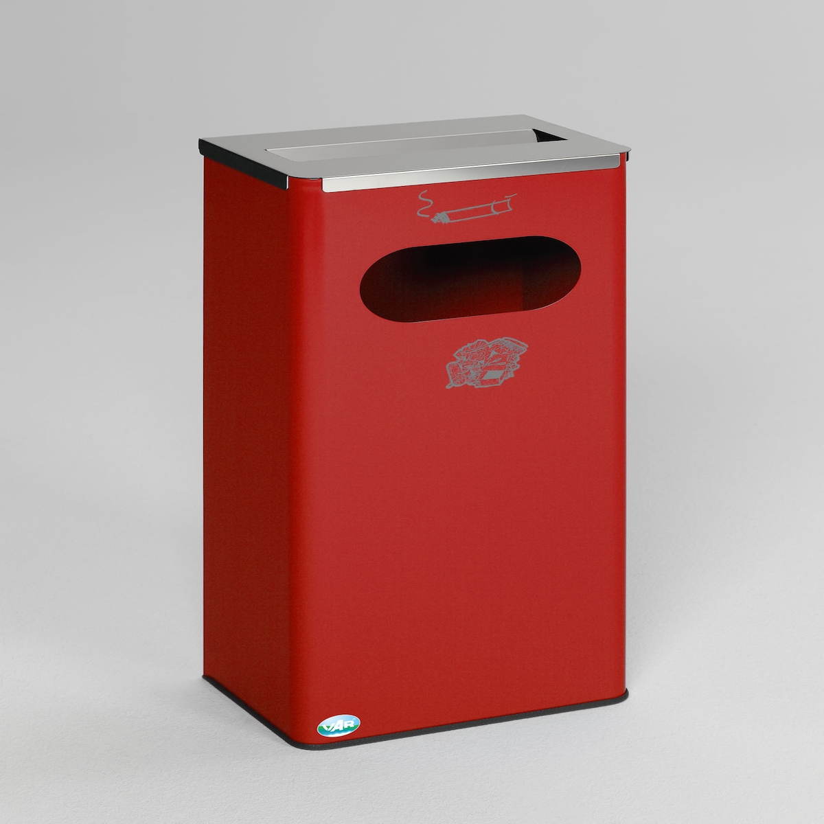 PROREGAL Robuster Kombiascher mit Edelstahl-Abdeckung | HxBxT 76x31x22cm | Verzinkter Stahl | Rot | Mülleimer Aschenbecher Abfalleimer