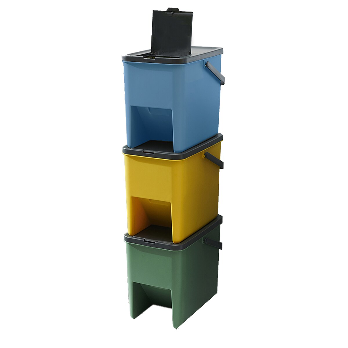 Mülltrennsystem 3fach Aufbewahrung Pfandflaschen Sammelbehälter Mülleimer 3 Fächer für Papier Glas und Plastik Behälter Recycling System Altg...