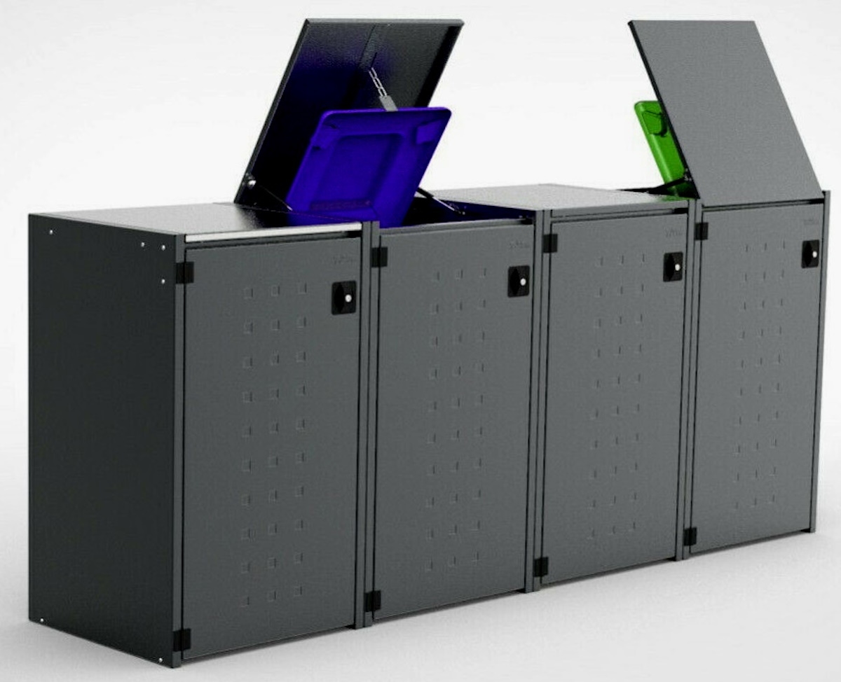 reinkedesign Mülltonnenbox BOXXI mit Kippdeckel 4x120L, Stahl Verzinkt in RAL-7016, Mülltonnenhaus, Mülltonnenverkleidung