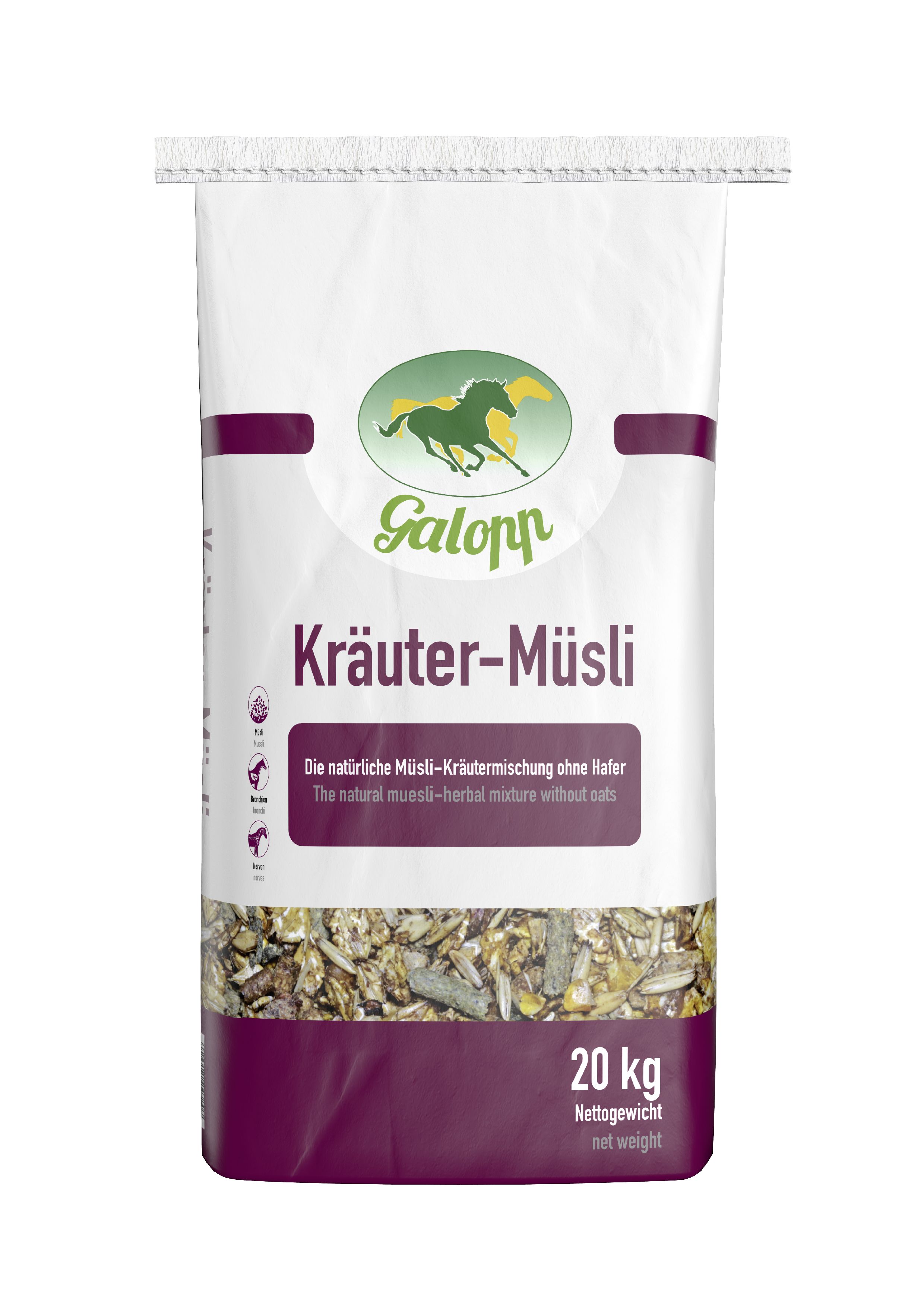 Galopp Kräuter-Müsli haferfreies Ergänzungsfutter mit Kräutern für Pferde 20 kg Sack