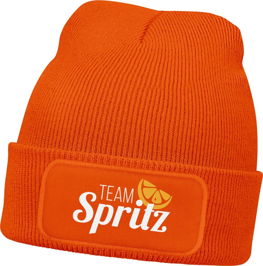 Herren Beanie Patch Strickmütze Spruch Team Spritz Aufdruck Lustig Mütze Männer Party Cocktail Apero Liebhaber Moonworks