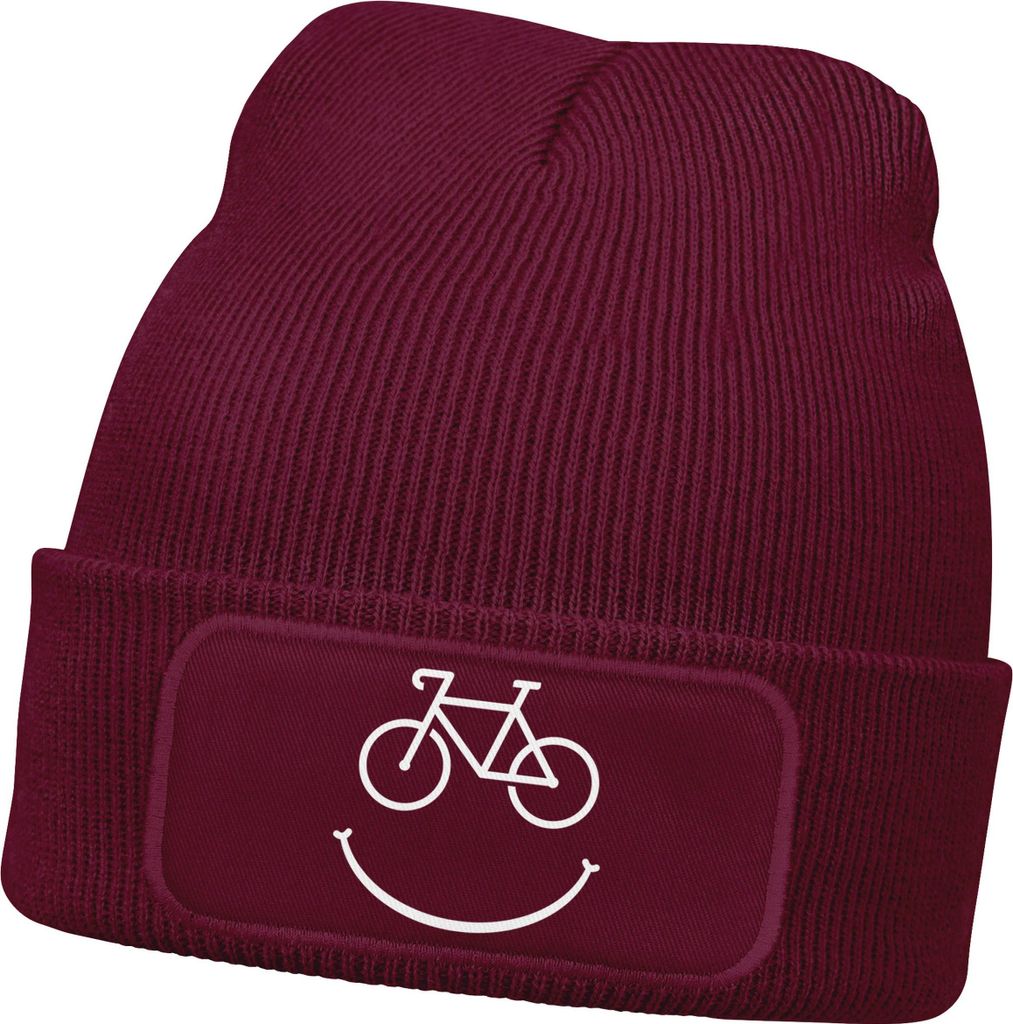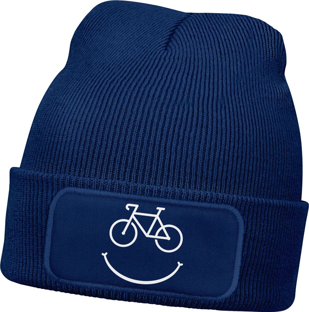 Herren Beanie mit Patch Strickmütze mit Spruch Aufdruck Fahrrad Smile Lustig Mütze Männer Moonworks