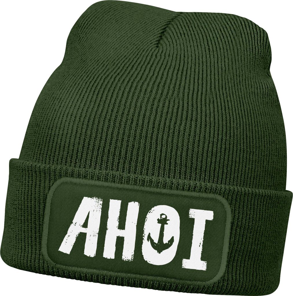 Herren Beanie Ahoi Patch Strickmütze Spruch Aufdruck Lustig Mütze Männer Maritim Streetwear Moonworks
