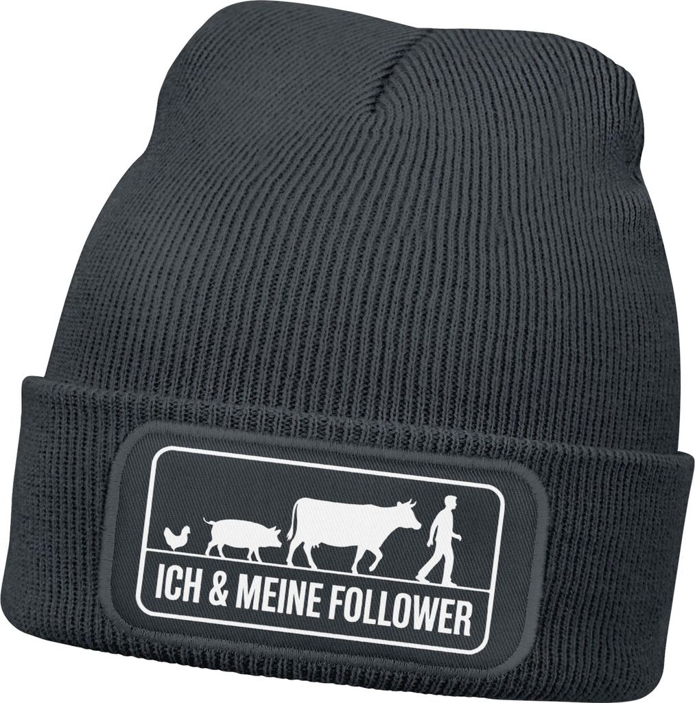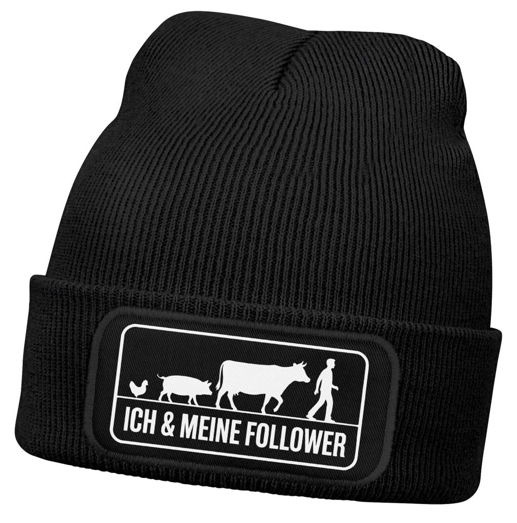 Herren Beanie Mütze mit Spruch | Ich und meine Follower | Geschenkidee Landwirt Strickmütze Aufdruck Lustig Wintermütze Männer Moonworks