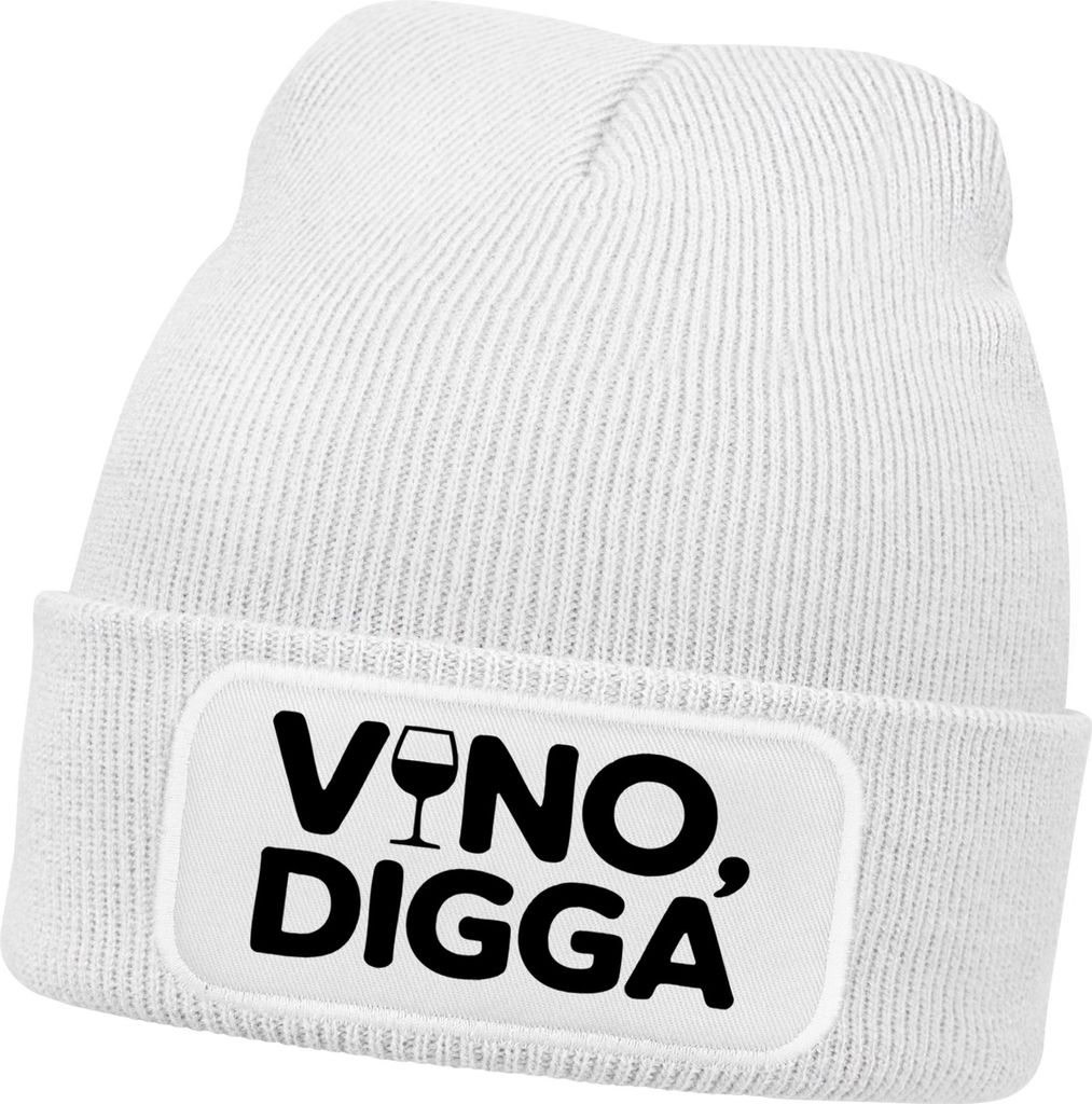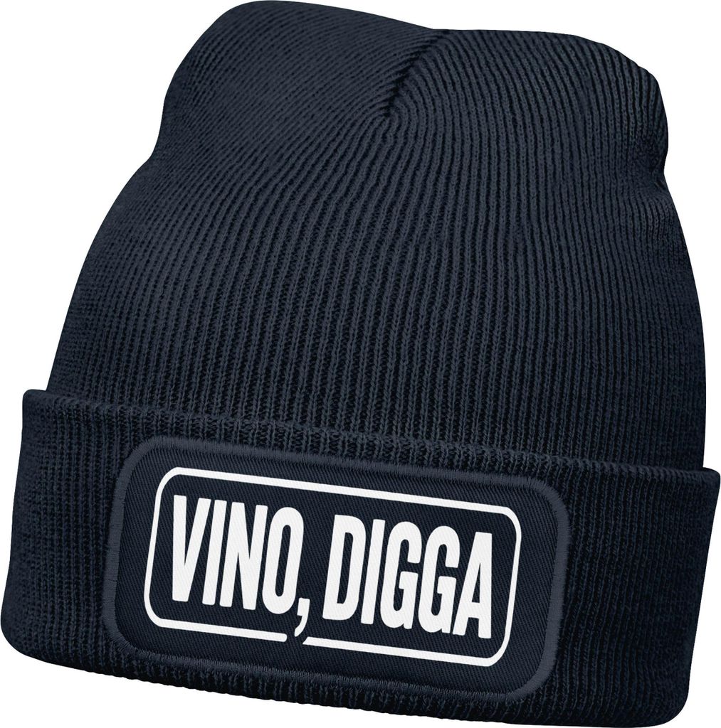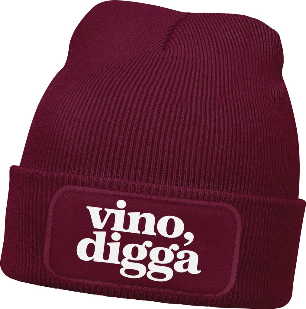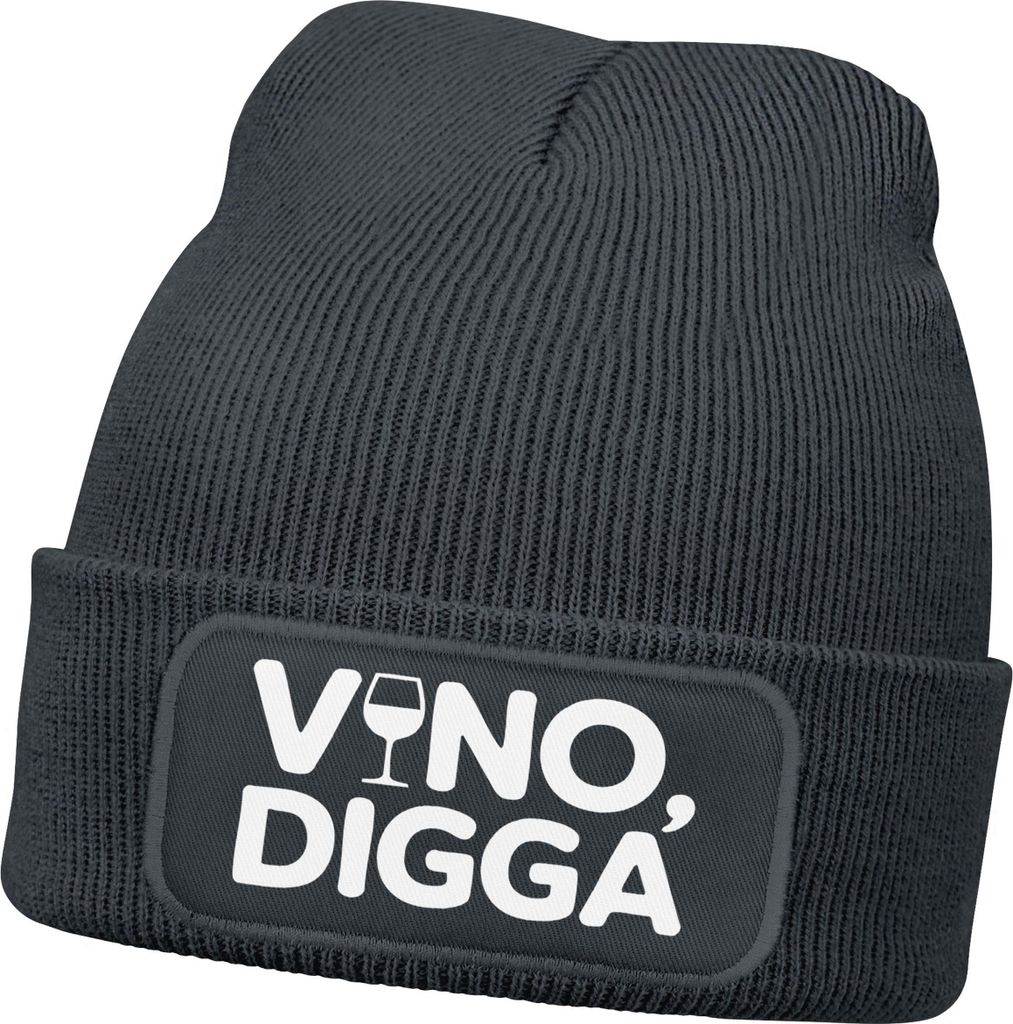Herren Beanie Strickmütze Vino Digga Spruch Aufdruck Lustig Mütze Männer Geschenk Weinliebhaber Moonworks