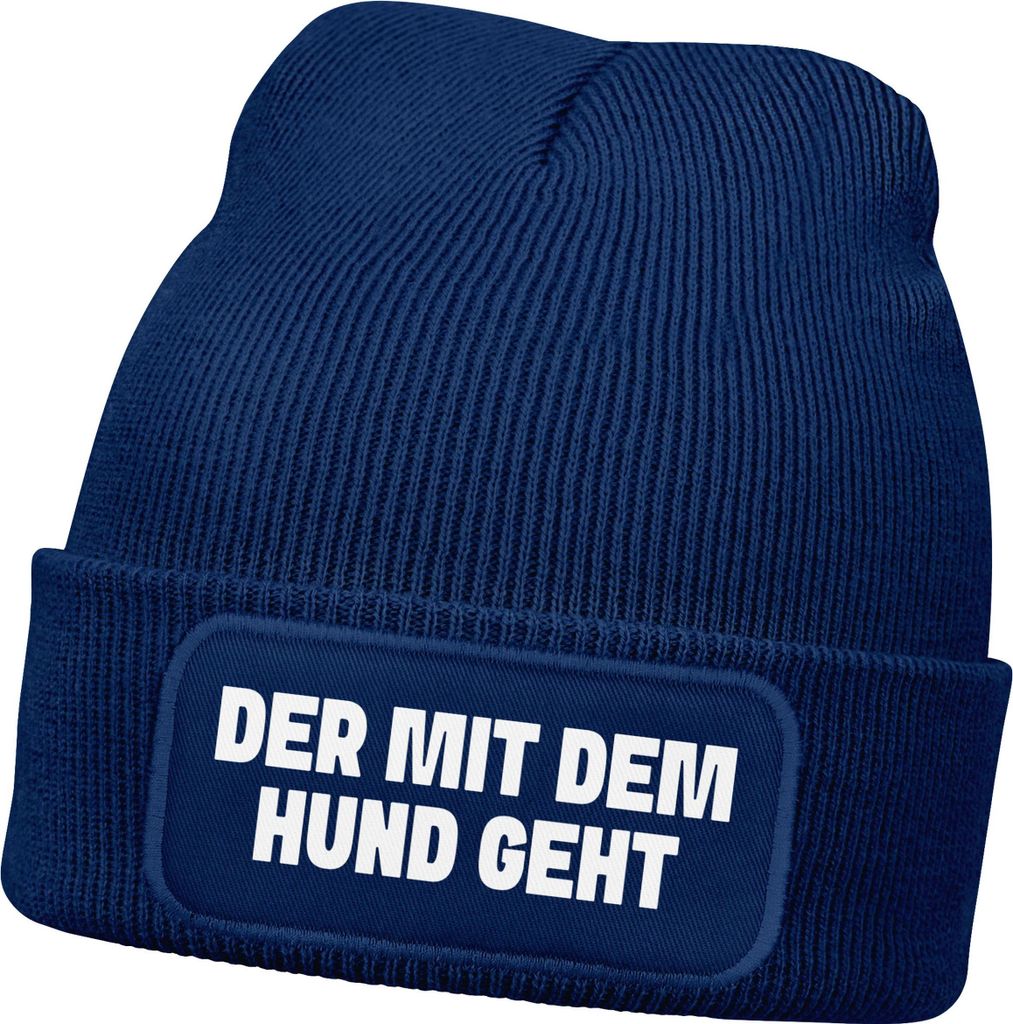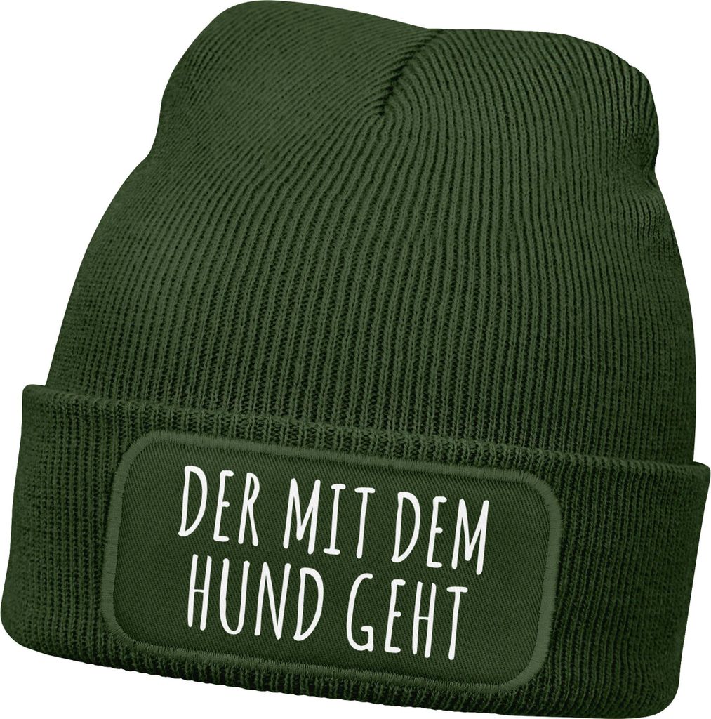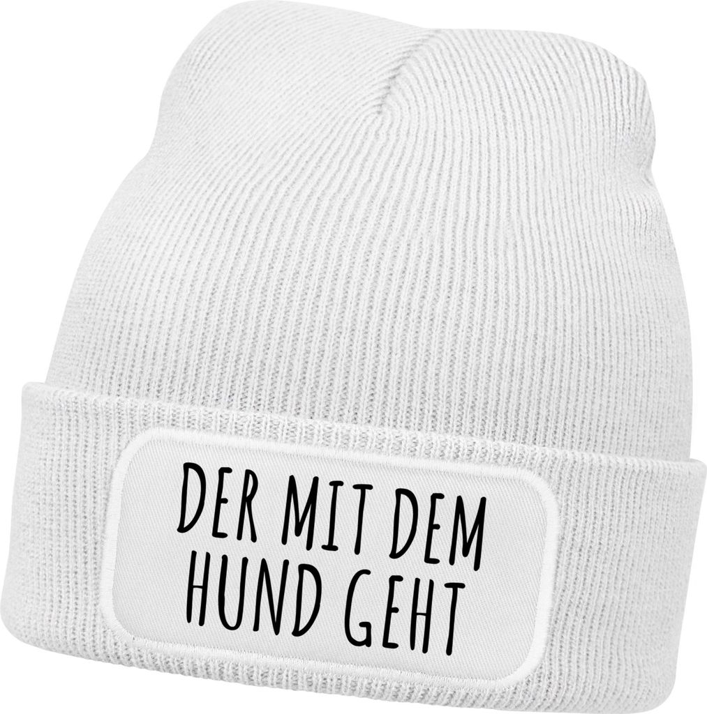 Herren Beanie mit Patch Strickmütze Gassi gehen Spruch Aufdruck Lustig Mütze Männer Geschenk Hundebesitzer Moonworks