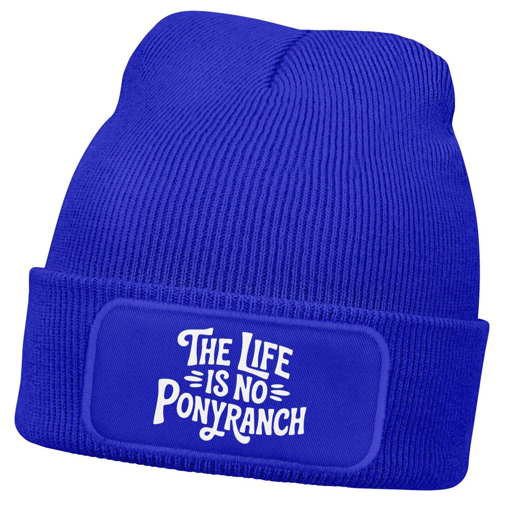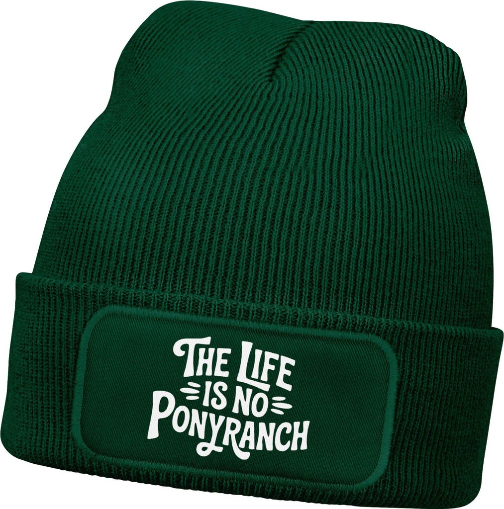 Herren Beanie mit Patch Leben ist kein Ponyhof Strickmütze Spruch Aufdruck Lustig Mütze Männer Moonworks