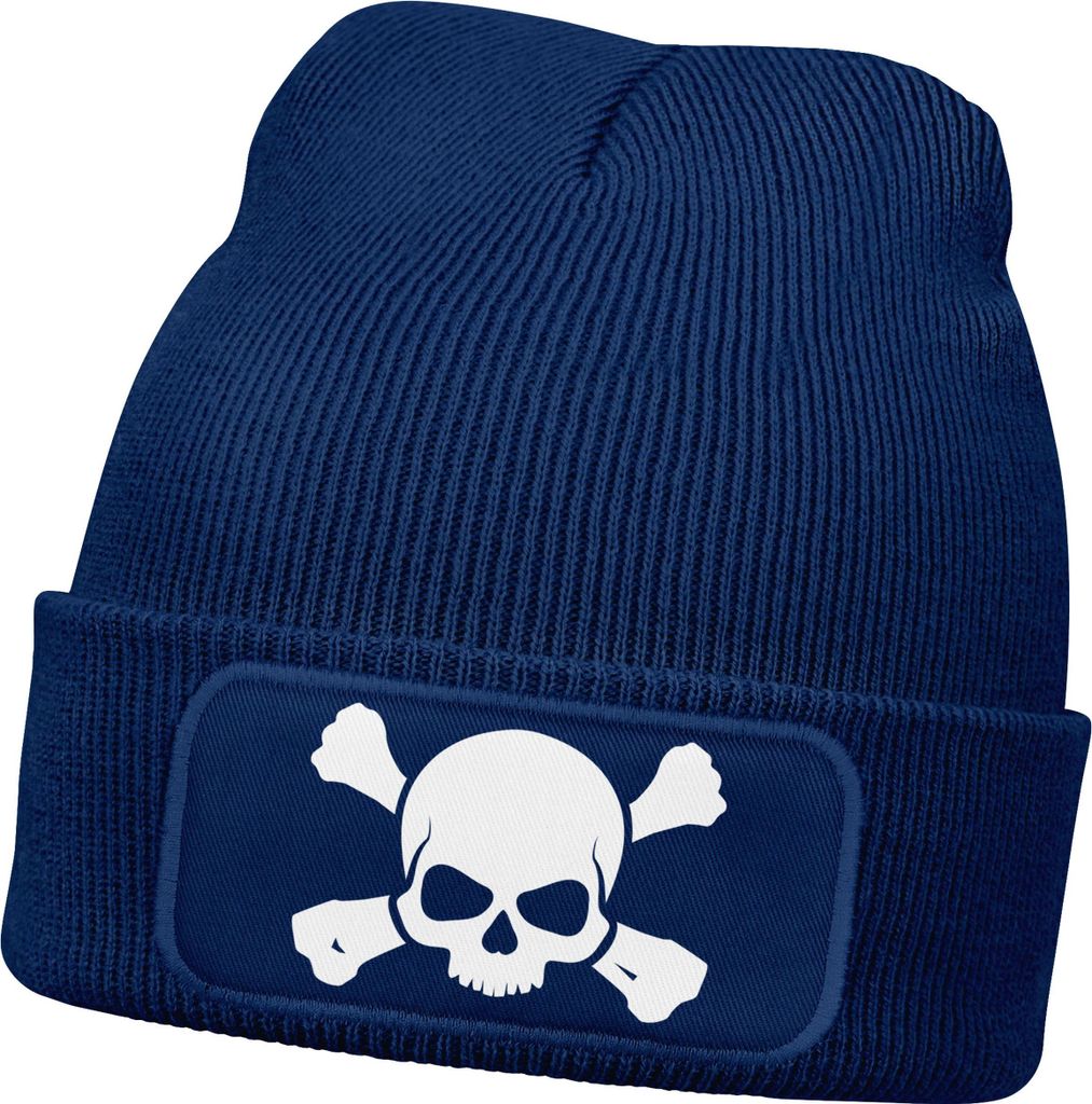 Herren Beanie mit Patch Skull Strickmütze Totenkopf Aufdruck Lustig Mütze Männer Moonworks