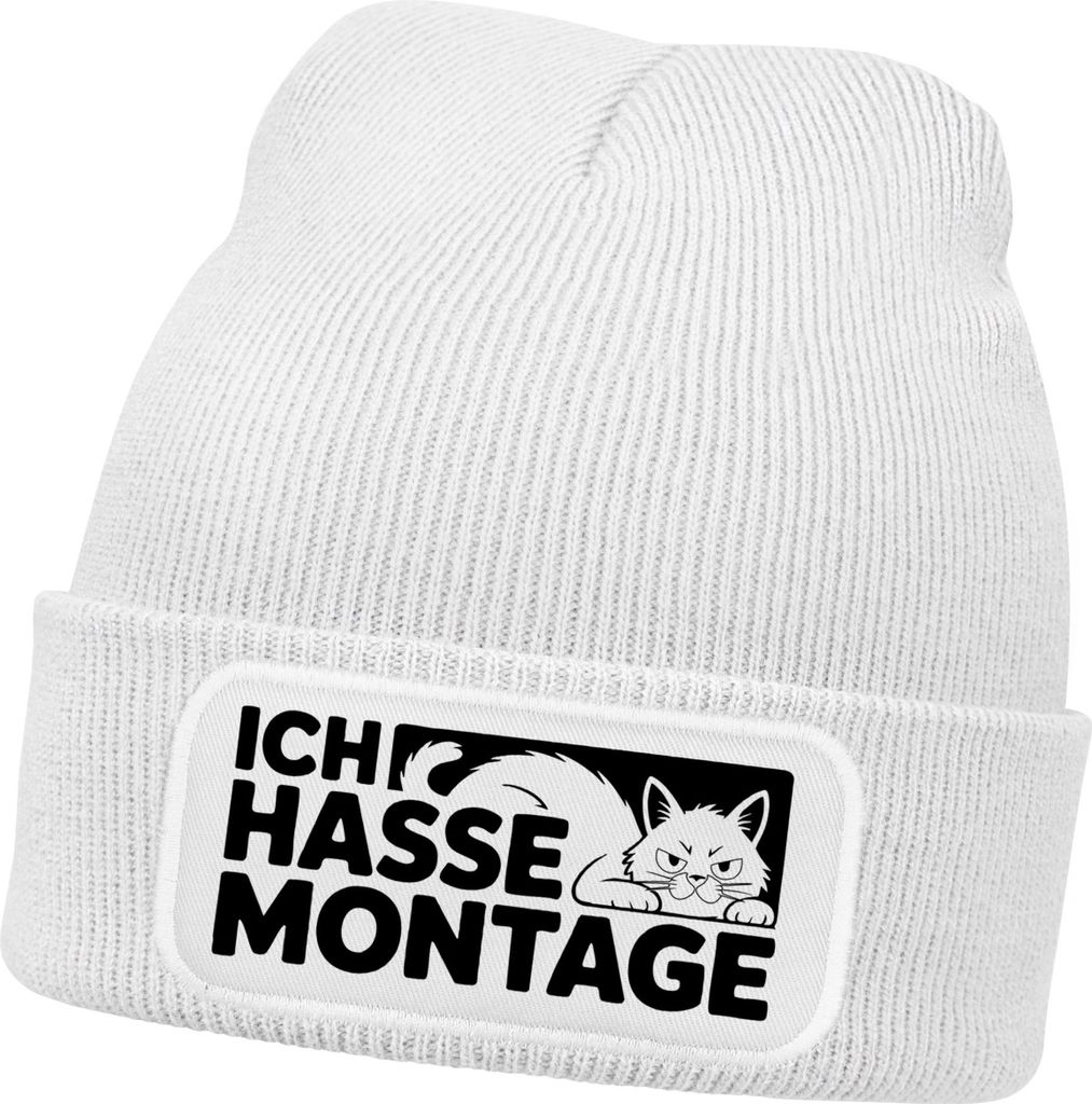 Herren Beanie Spruch Hasse Montage Strickmütze Aufdruck Anti Motivation Lustig Mütze Männer Moonworks