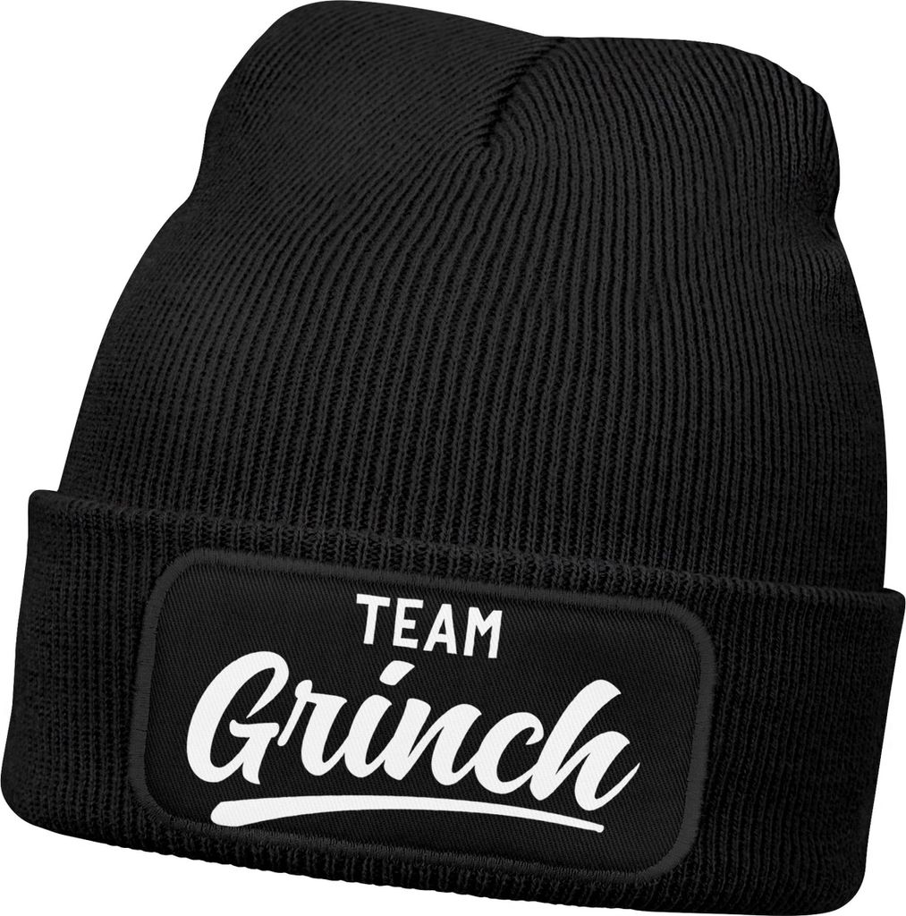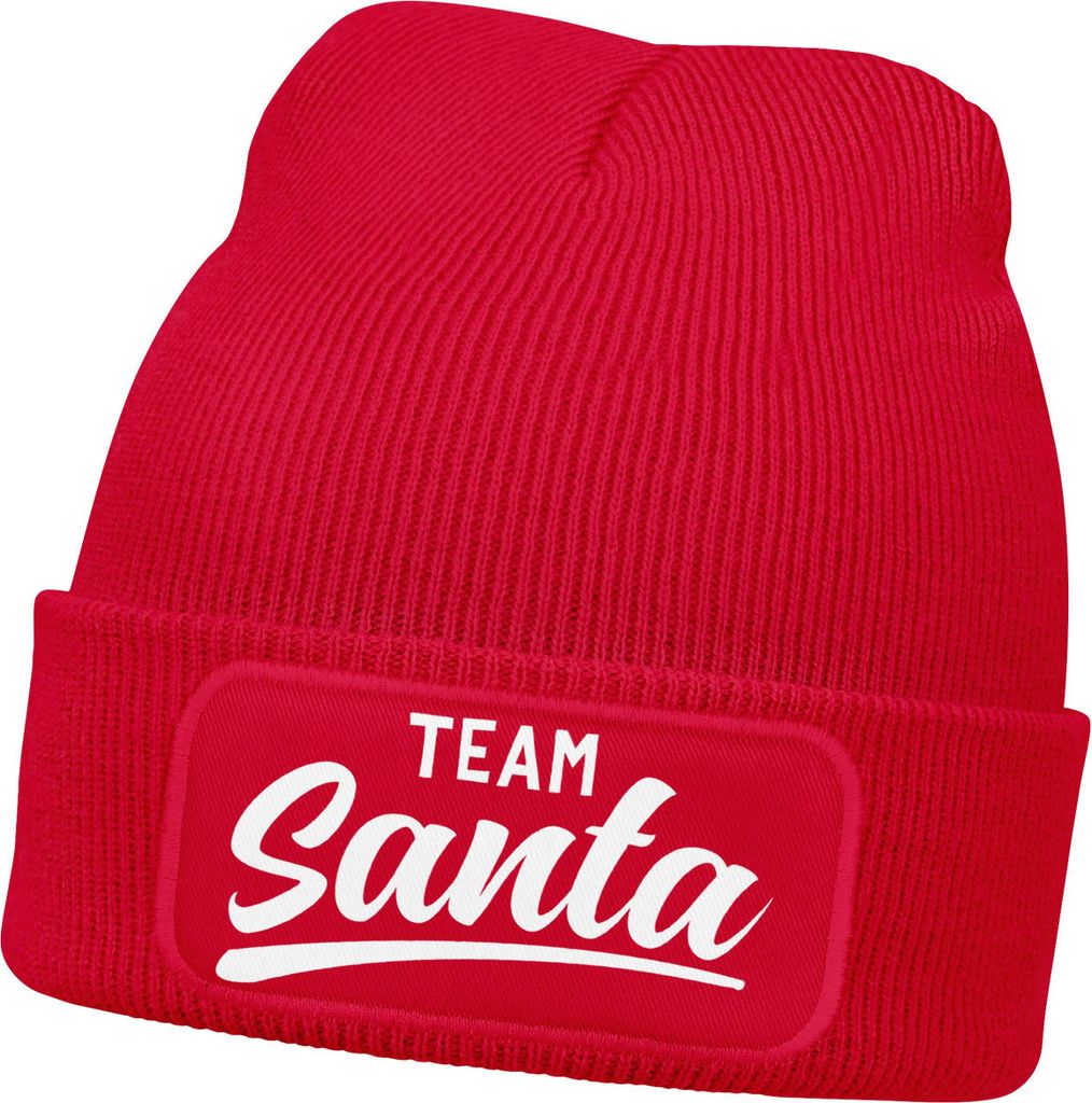 Herren Beanie mit Patch Strickmütze mit Spruch Team Santa Aufdruck Weihnachten Lustig Mütze Männer Moonworks