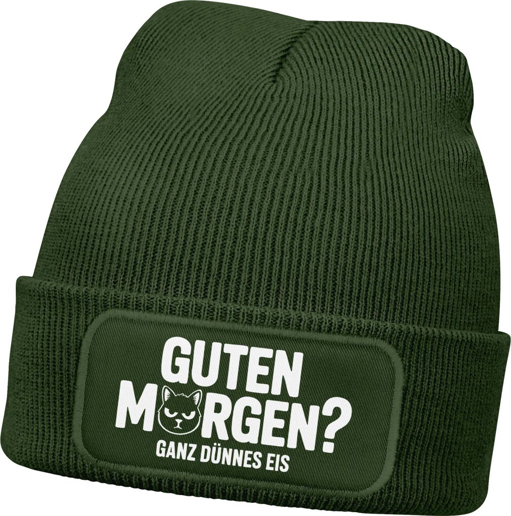 Herren Beanie Spruch Morgenmuffel Katze Ganz dünnes Eis Strickmütze Aufdruck Lustig Mütze Männer Moonworks