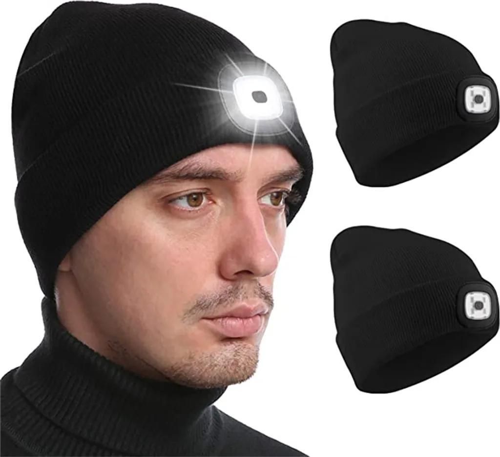 LED Mütze mit Licht, Beleuchtete Mütze Aufladbar USB für Männer und Frauen, Einstellbare Helligkeit Stirnlampe Winter Beanie Mütze mit Licht, ...