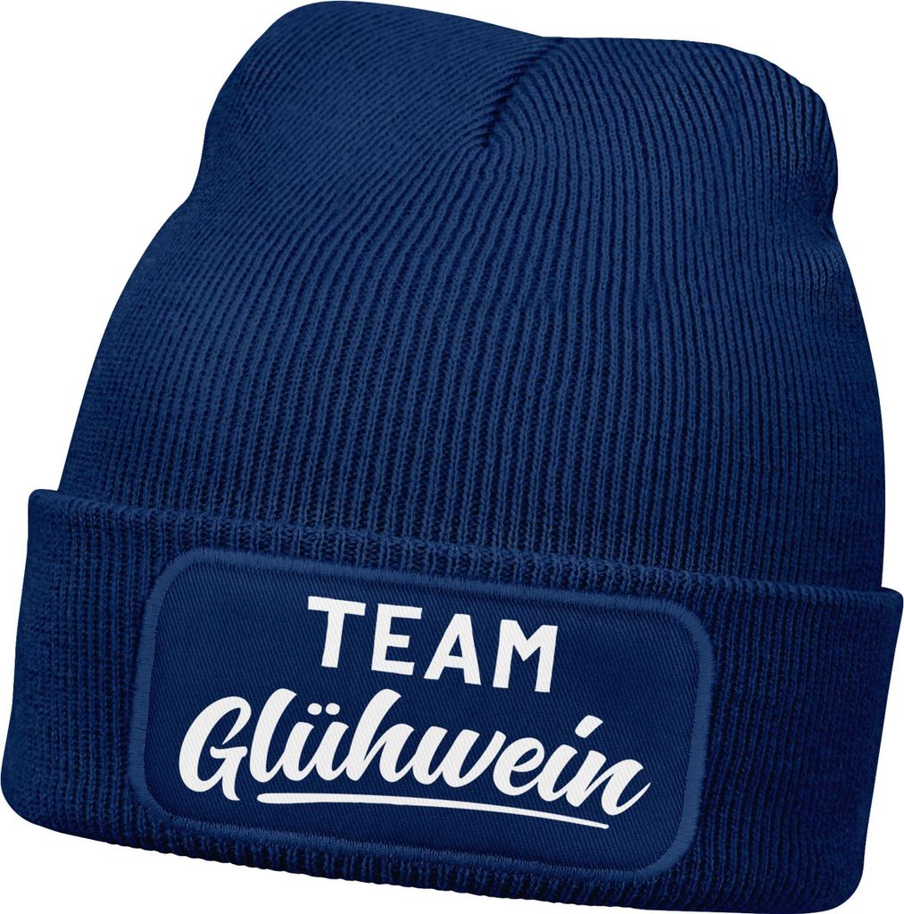 Herren Beanie mit Patch Strickmütze mit Spruch Team Glühwein Aufdruck Lustig Mütze Männer Moonworks
