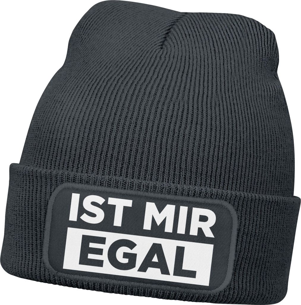 Herren Beanie mit Patch Strickmütze mit Spruch Ist mir egal Statement Aufdruck Lustig Mütze Männer Moonworks