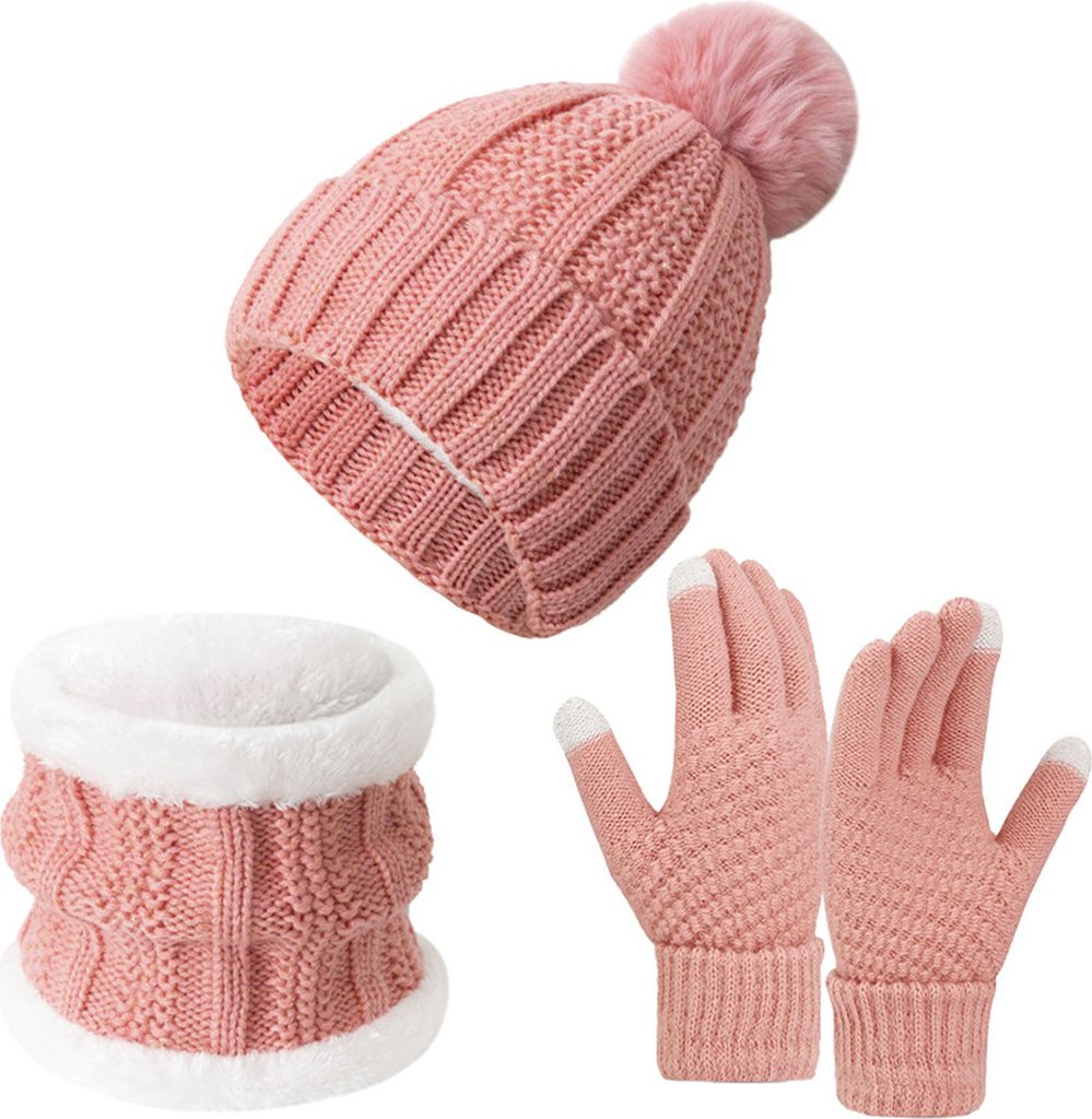 Stricken Mütze,Schal und Handschuh Set Frauen Männer Mädchen Uni Strickmütze erdicken Schal Handschuh Hut