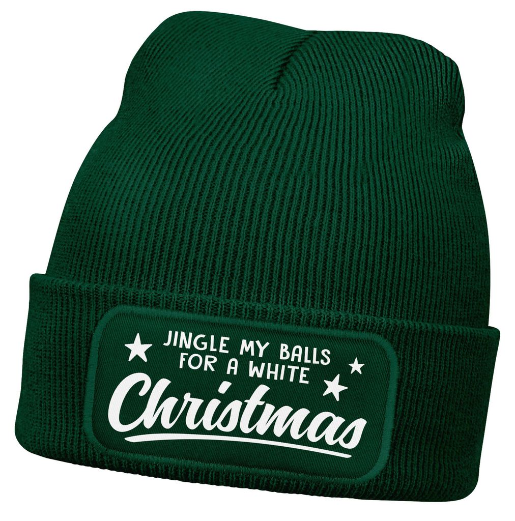 Herren Beanie Weihnachten Strickmütze XMAS Spruch Lustig Jingle my balls for a white Christmas Mütze Männer Moonworks