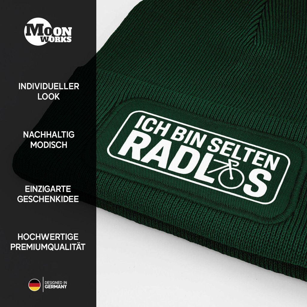 Herren Beanie mit Patch Strickmütze mit Spruch Geschenk Radfahrer Aufdruck Lustig Mütze Männer Moonworks