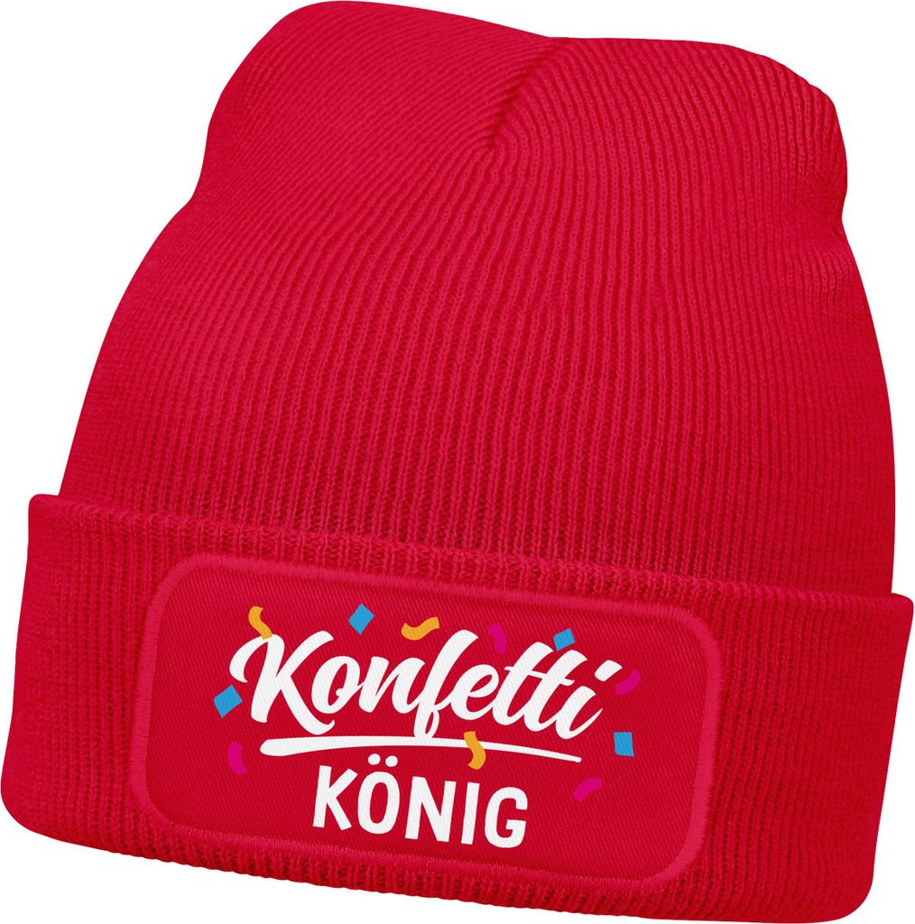 Herren Beanie Patch - Design Konfetti König - Strickmütze mit Spruch Aufdruck Fasching Karneval Lustig Mütze Männer Moonworks