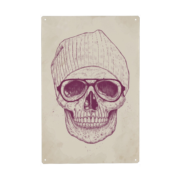 Metall Poster "Cool Skull" artboxONE - Schwarzweiß,Für Papa,Männer,Lustig - Hipster,Funny,Cooler typo,Mütze,Gangsta,Skull,Totenkopf,Skelett,Lustig