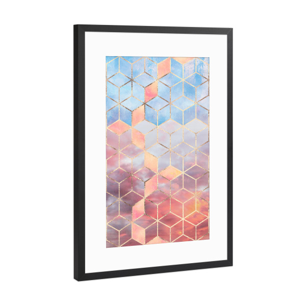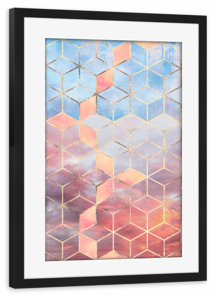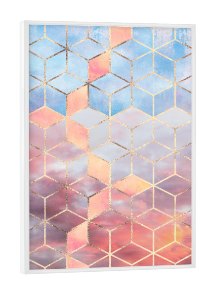 Poster mit weißem Rahmen "Magic Sky Cubes" artboxONE - Natur,Abstrakt,Geometrie - Graphic,Patterns,Sky,Gold