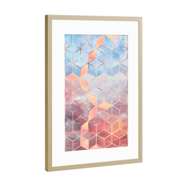Poster mit Rahmen Gold "Magic Sky Cubes" artboxONE - Natur,Abstrakt,Geometrie - Graphic,Patterns,Sky,Gold