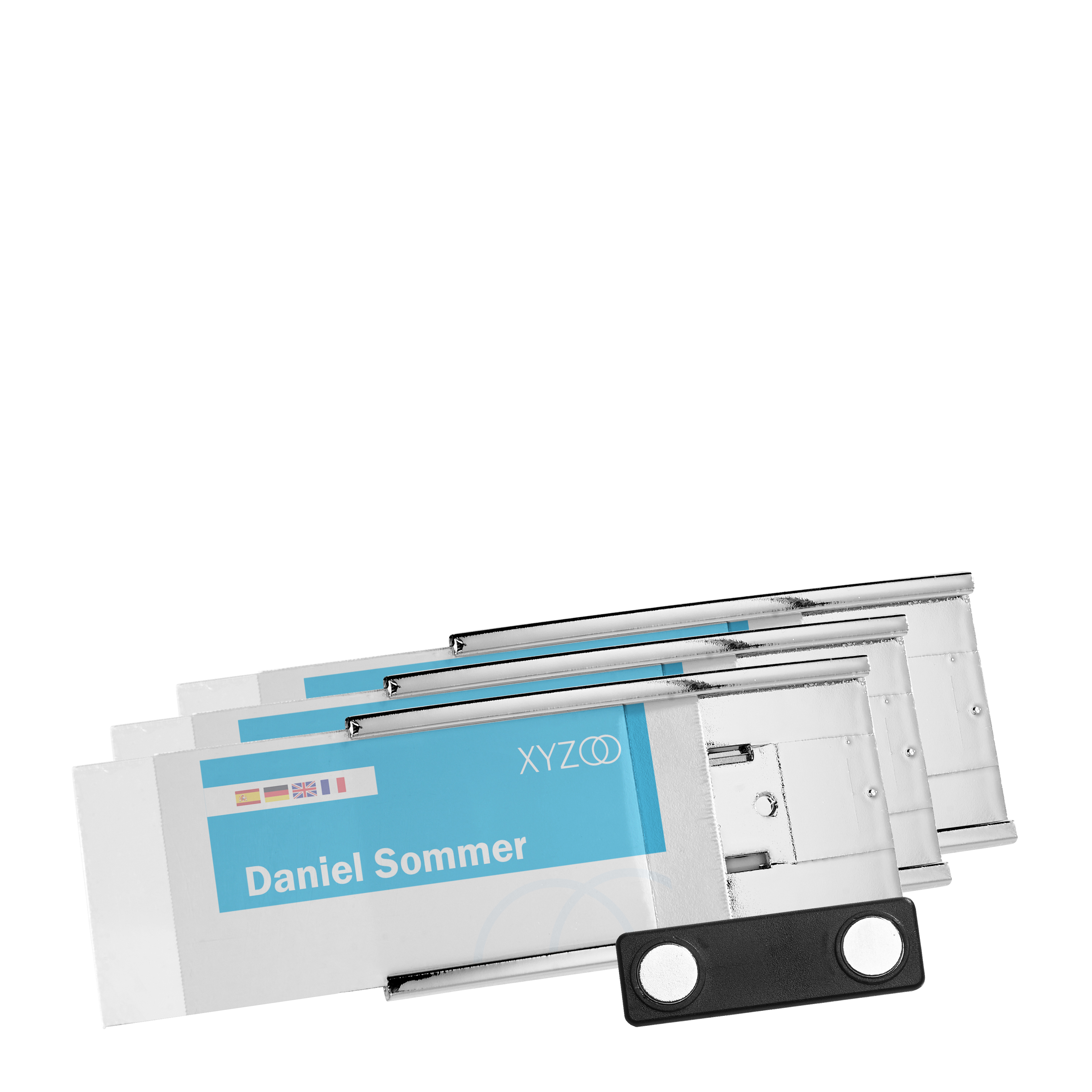 10 Namensschilder aluline-plus , magnetisch 76 x 25 mm | silber | smag Magnet, Aluminium