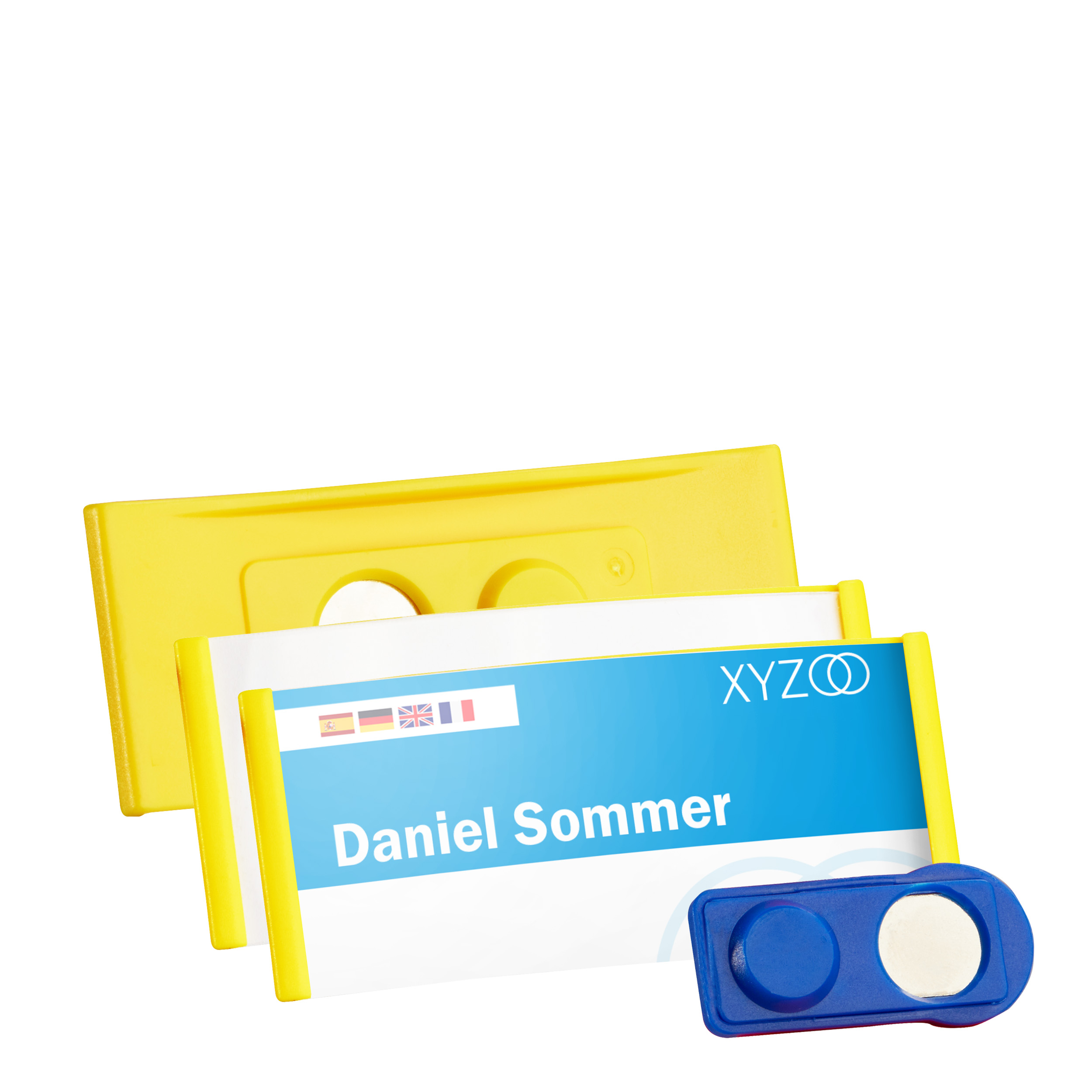 10 Namensschilder OFFICE, magnetisch 75 x 27 mm | gelb | smag Magnet, extra stark, Kunststoff