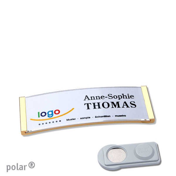 10 Namensschilder polar , magnetisch 74 x 34 mm | gold | smag Magnet, extra stark, Kunststoff
