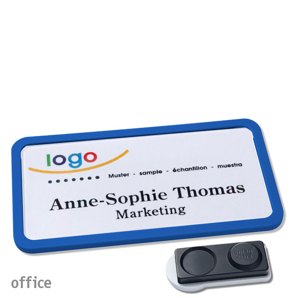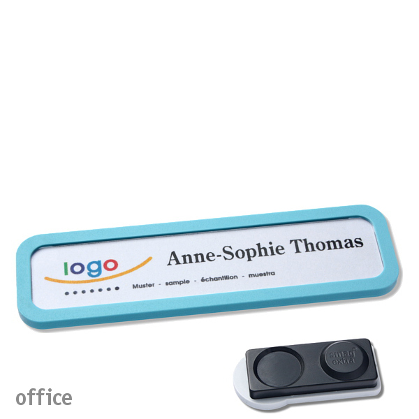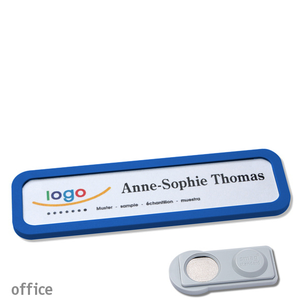 10 Namensschilder OFFICE, magnetisch 75 x 27 mm | blau | smag Magnet, Kunststoff