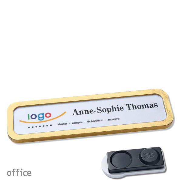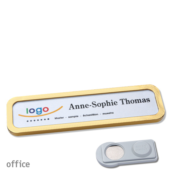 10 Namensschilder OFFICE, magnetisch 75 x 17 mm | gold | smag Magnet, Kunststoff