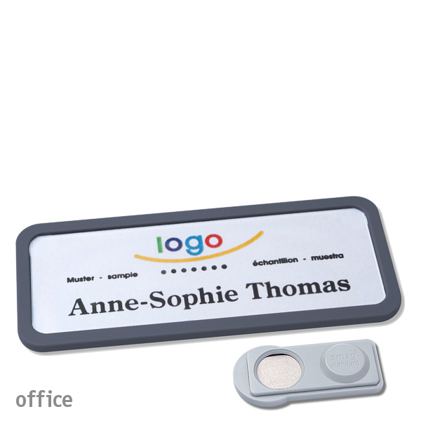 10 Namensschilder OFFICE, magnetisch 75 x 27 mm | grau | smag Magnet, Kunststoff