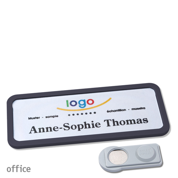 10 Namensschilder OFFICE, magnetisch 75 x 27 mm | anthrazit | smag Magnet, Kunststoff