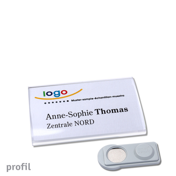 10 Namensschilder PROFIL, magnetisch 60 x 37 mm | smag Magnet, Acryl (PMMA), transparent