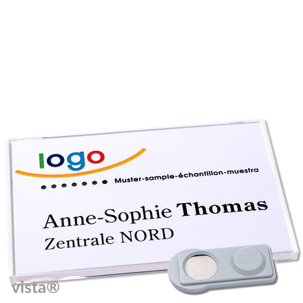 10 Namensschilder VISTA, magnetisch 85 x 54 mm | weiß | smag Magnet, Kunststoff