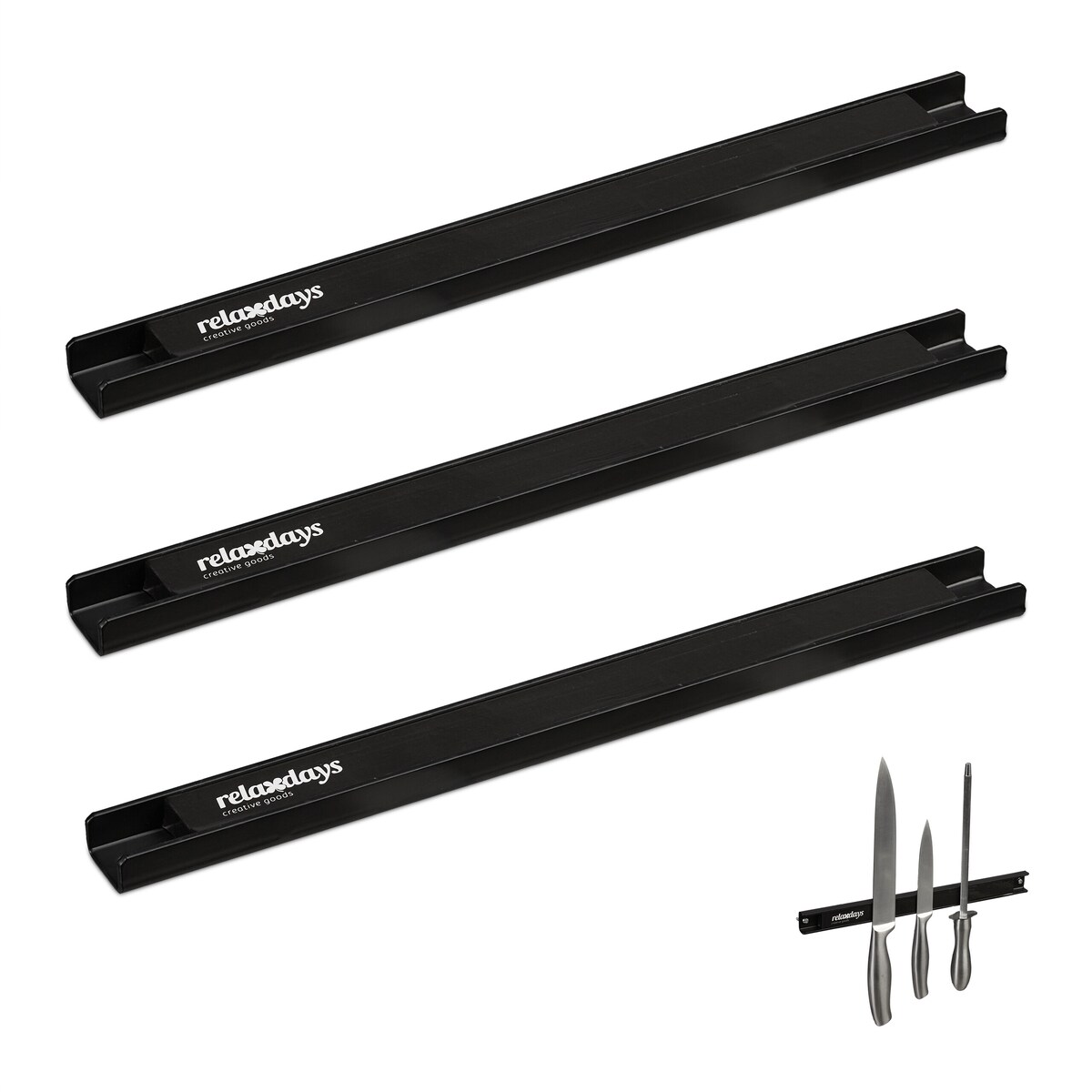 Relaxdays Magnetleiste 3er Set, je 30 cm lang, Stahl, Messerhalter für Werkzeug & Messer, an die Wand schrauben, schwarz