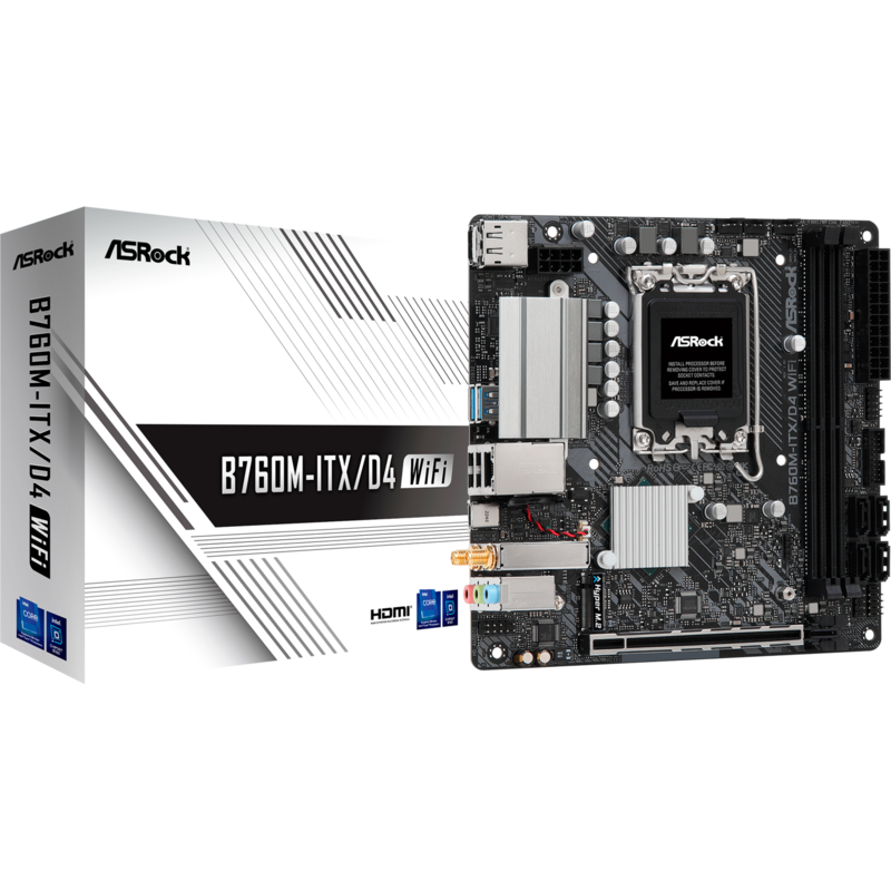 ASRock B760M-ITX/D4 WIFI Mainboard, schwarz/silber