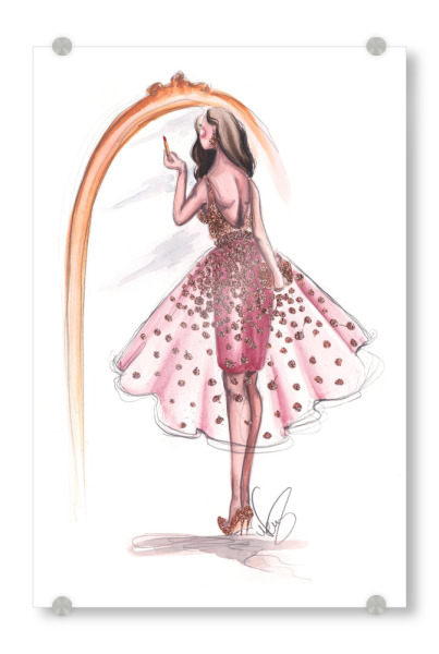 Acrylglasbild "Getting Ready" artboxONE - Fashion - Fashion illustration,Mode,Makeup,Style,Dress,Kleid,Spiegel,Mirror,Going out,Feiern