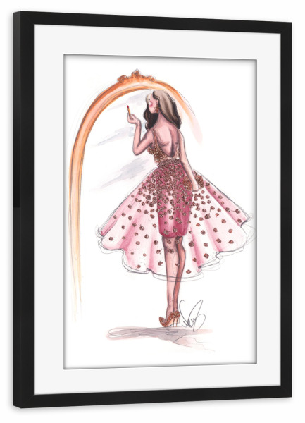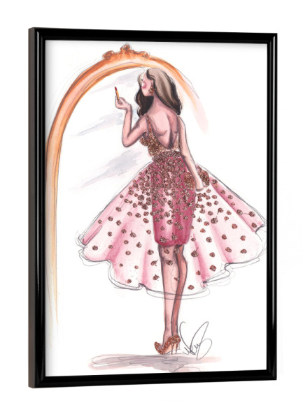 Poster mit schwarzem Rahmen "Getting Ready" artboxONE - Fashion - Fashion illustration,Mode,Makeup,Style,Dress,Kleid,Spiegel,Mirror,Going out,Feiern